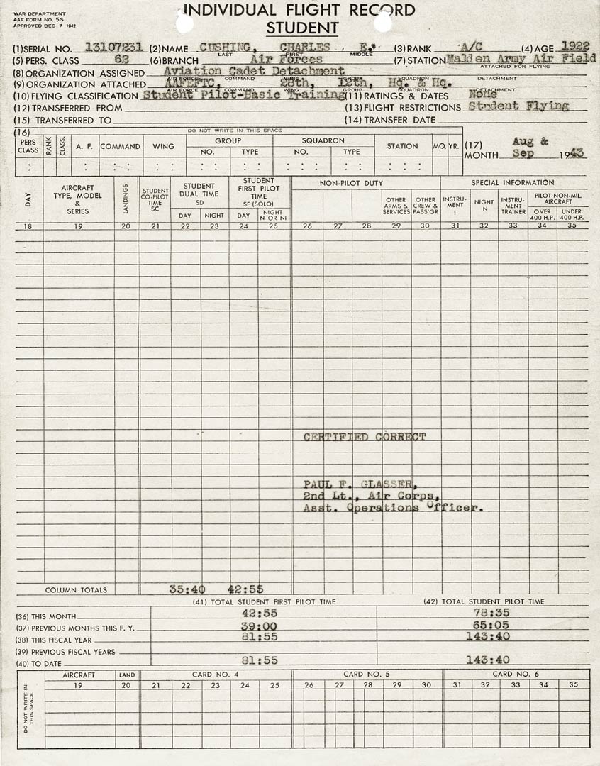 Cushing as co-pilot of ship 053. Other pilots: Plecher 549, McKee