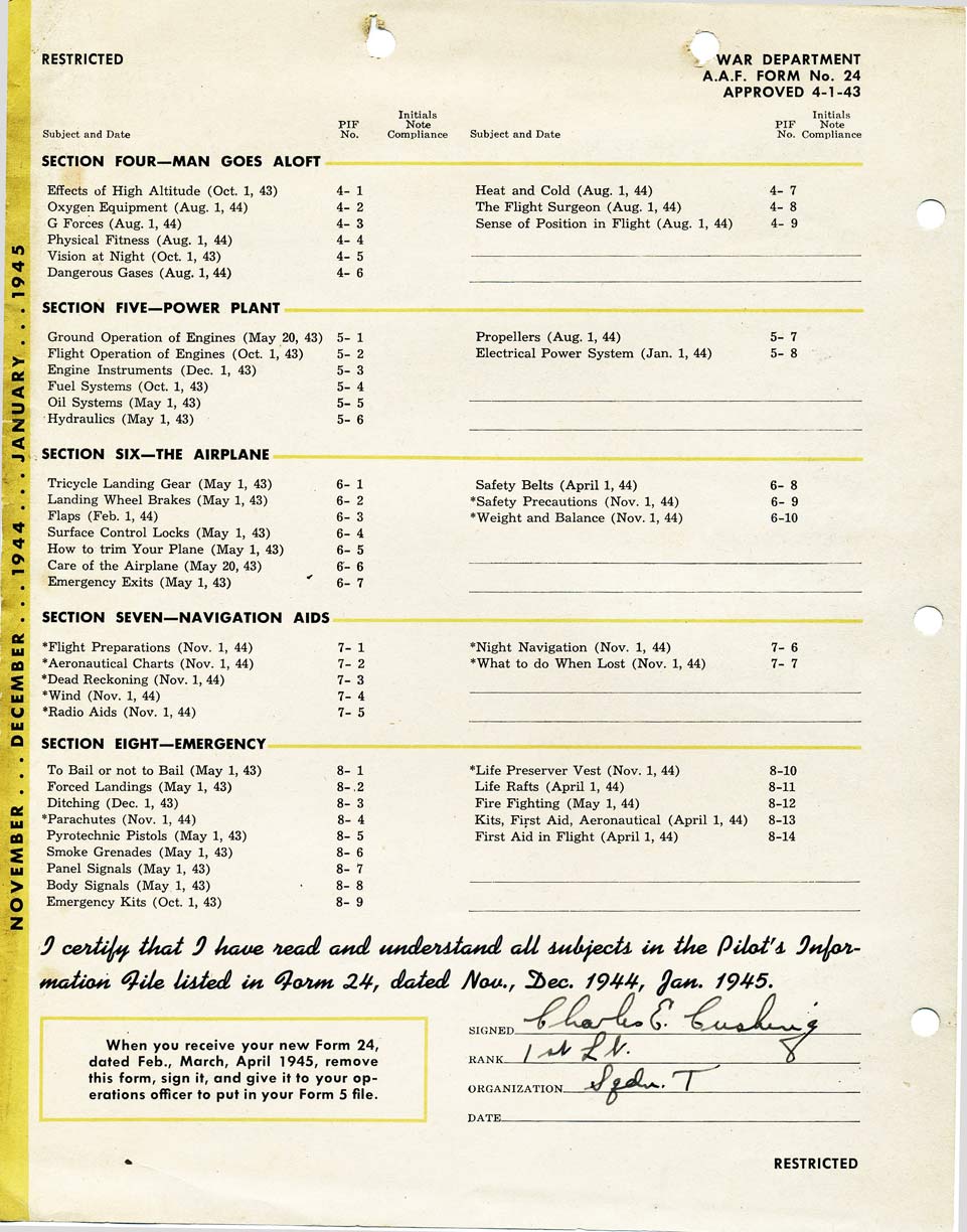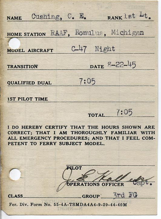 Certificate Application and Flight Check Form, C-45 aircraft, Rank: 1st