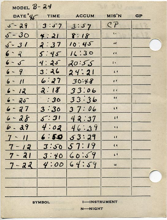at top. Take off time 0639. No date, possibly Aug 6, 1944, Cushing's sortie #9