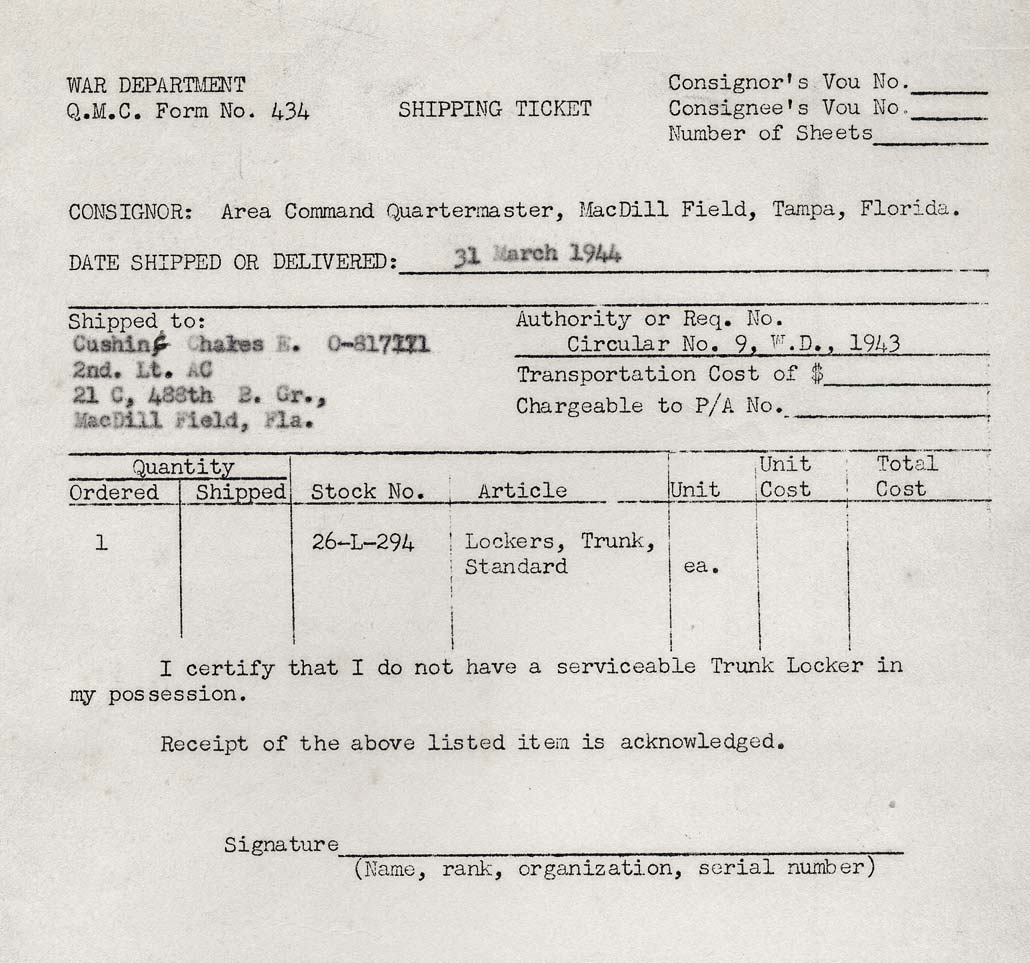 Rank: 2nd Lt. 488th bomb group (MacDill Field)