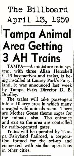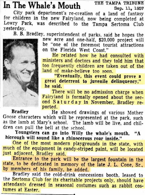 In late Oct 1957 the Tampa Tribune and Times announced the scheduled opening of Fairyland.