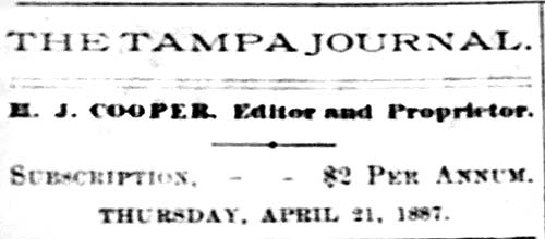 Smith sold his interest in the Herald in November, 1854, to Dr. J. S. Jones. Throughout his life, Cooley Reynolds, a member of the well-known Brandon family, was torn between two callings, his clerical duties first and foremost, and as a writer and publisher, second. After the Civil War, Reynolds turned up in Clearwater and there in 1873 he established the city’s first newspaper, the Clear Water Times. Also involved in the publishing of Tampa’s first newspaper, the Herald, was Henry A. Crane. The newsman left Tampa and joined the Union forces in Key West during the Civil War, while his son, Judge H. L. Crane, served as a Confederate soldier through the conflict. When Dr. J. S. Jones took over the Tampa Herald he changed its name to the Florida Peninsular and in August, 1855, sold it to Simon Turman, Jr., saying in the editorial column that he was forced to sell because "it did not pay sufficient to support my family.” Three years later William J. Spencer bought an interest in the paper.