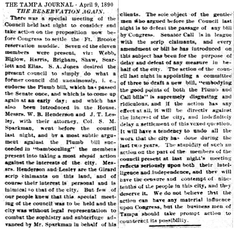 The Tampa Journal was for S. A. Jone's proposal, known as the "Plumb Bill" seen below. |