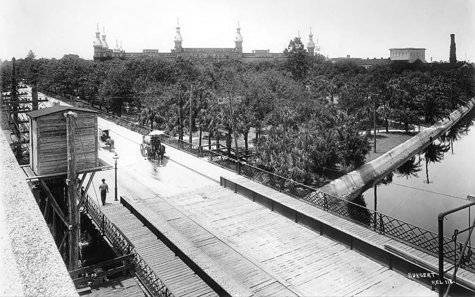 This time, the city delayed the contract award for the simple reason that it did not have the money to pay for the project. The anticipated bridge cost, even with the low bid, was about $240,000, including royalties, engineers’ fees, abutments, and approaches. The bond issue was for $190,000. Simmering resentment about the Owego affair and lingering questions over Tampa Electric’s right to use the bridge further complicated the process. Intriguingly, the electric company’s rejected offer to pay $50,000 toward the cost of construction was now precisely the difference between the bond issue and the projected cost. Tampa Electric claimed to have a perpetual right to cross any bridge the city might build at Lafayette Street, however, and while the council doubted that claim could be upheld in court, it was agreed that the question should be resolved before construction began. The contract letting was delayed to give time to resolve some of these issues; however, public sentiment demanded a new bridge and soon.