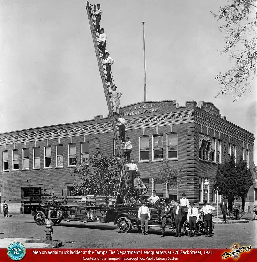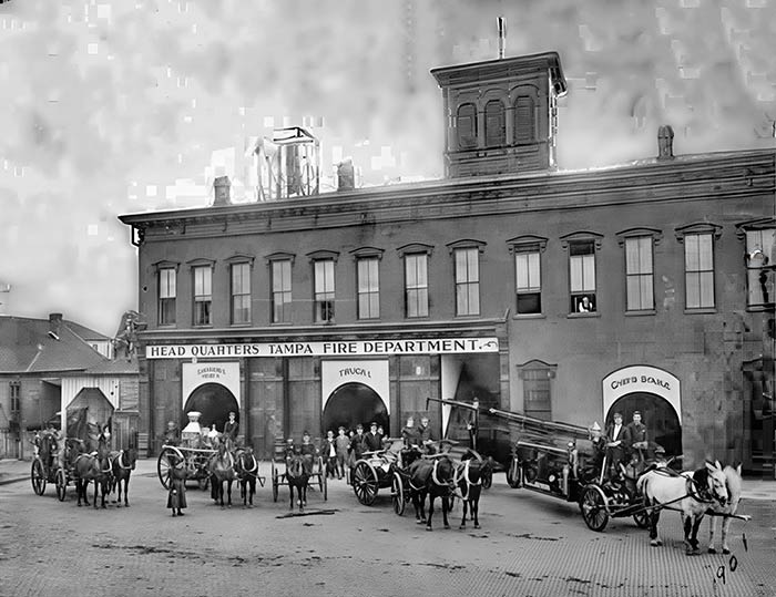 GIDDINGS MABRY HANDLES LAND ISSUES FOR NEW FIRE STATION As city attorney, in March 1911, Giddings was called to negotiate contracts with property owners of land surrounding the site of the planned, new Tampa Fire Station at Zack and Jefferson St. This location would be only the 2nd site of Fire Station #1, after being housed in the ramshackle City Hall built in 1892 at Lafayette between Florida Ave. and Franklin St. Today this building on Zack Street is the Tampa Firefighters Museum, and the old 1892 City Hall building was replaced in 1915 by the old historic City Hall we have today. See Burgert Bros. page 4 for close ups of the men.