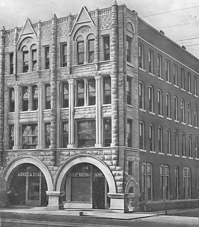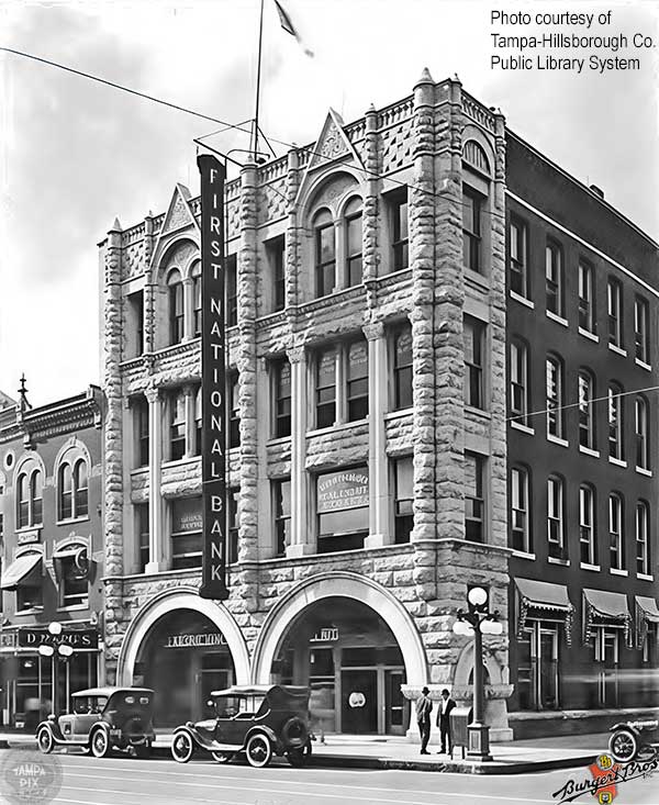 THE FIRST NATIONAL BANK OF TAMPA The First National Bank started life as "The Bank of Tampa" in the early 1880s in a small wood frame structure on Washington St. just west of Franklin St.
