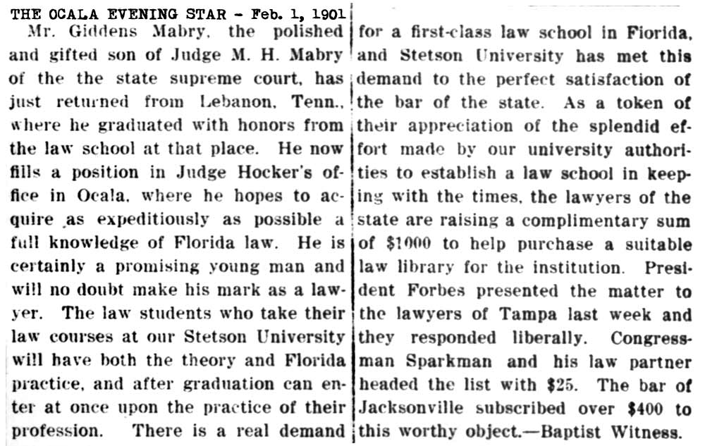 GIDDINGS MABRY AT OCALA 1901-02-01 The Ocala Evening Star