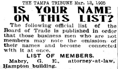 only reference to Mabry & Mabry in Florida newspapers 1904-02-02 Tampa Tribune