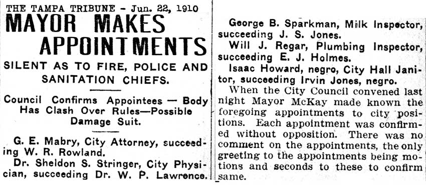 GIDDINGS MABRY, TAMPA CITY ATTORNEY 1910-06-22 The Tampa Tribune ![]()