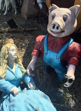 "This was our Disney World," Nunez said. "This was our place. I thought the characters were gone," Nunez said. When he looks now at the storybook characters tossed haphazardly behind the warehouse, he can't help but chuckle. Only two of the homes built by the Three Little Pigs have survived the elements. Ironically, it's the brick one that is long gone. And in the far corner lies Humpty Dumpty, flat on his back. "He fell off that wall," said Nunez said. "But we're going to put him back together again."
