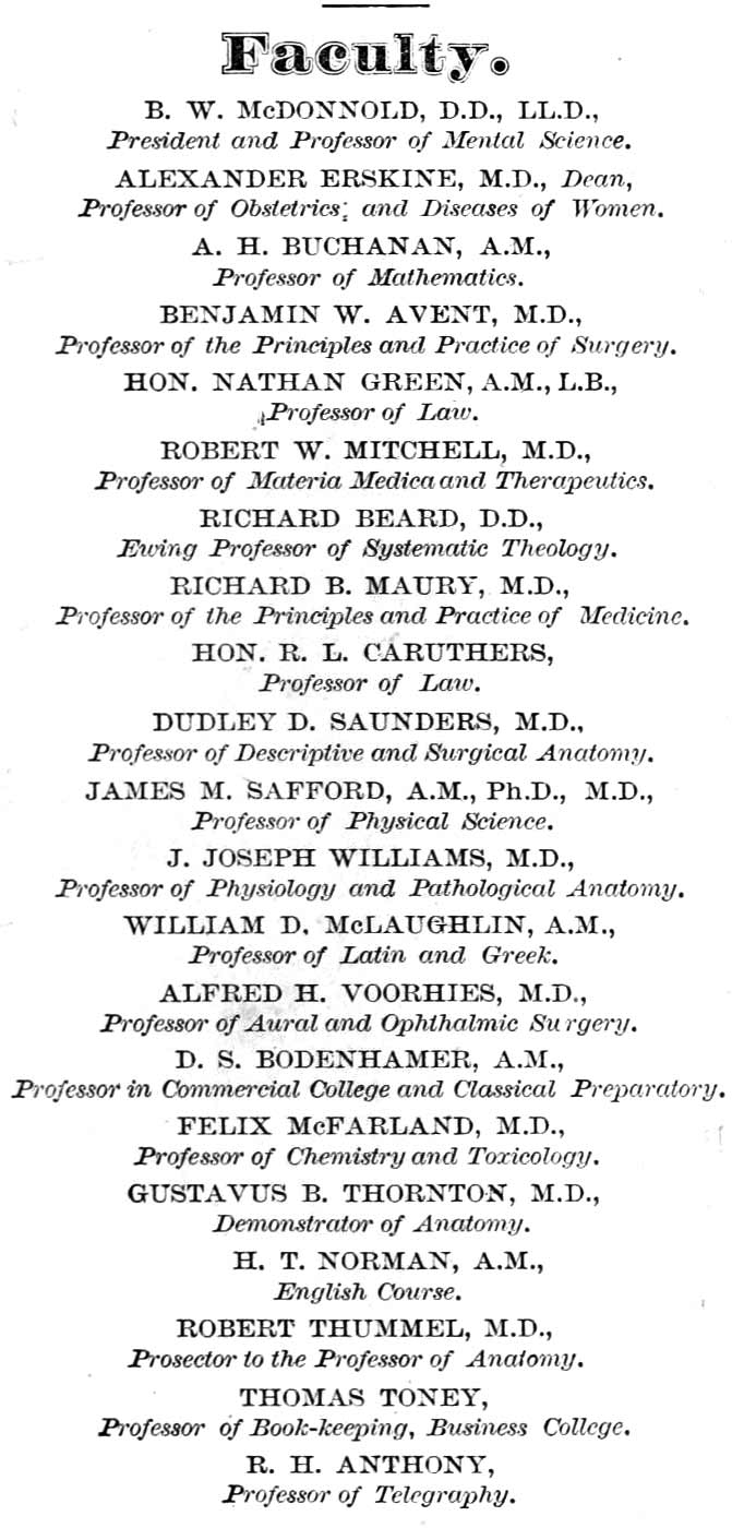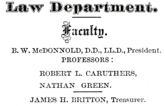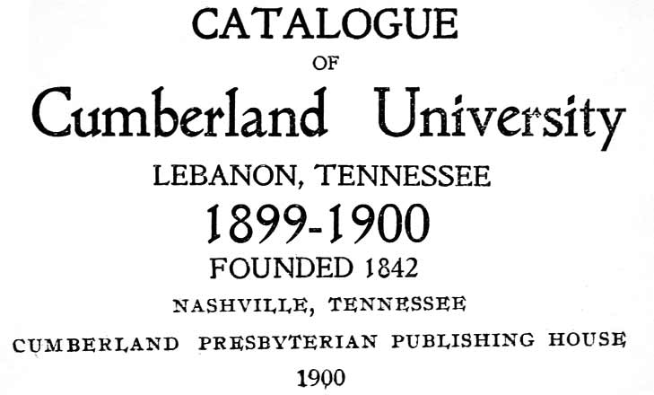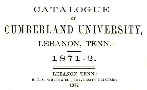 SUPPORTING SOURCES Cumberland University Annual Catalog, 1871-1872