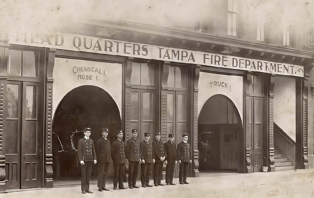 GIDDINGS MABRY HANDLES LAND ISSUES FOR NEW FIRE STATION As city attorney, in March 1911, Giddings was called to negotiate contracts with property owners of land surrounding the site of the planned, new Tampa Fire Department at Zack and Jefferson St. This location would be only the 2nd site of Fire Station #1, after being housed in the ramshackle City Hall built in 1892 at Lafayette between Florida Ave. and Franklin St. Today this building on Zack Street is the Tampa Firefighters Museum, and the old 1892 City Hall building was replaced in 1915 by the old historic City Hall we have today. See Burgert Bros. page 4 for close ups of the men.