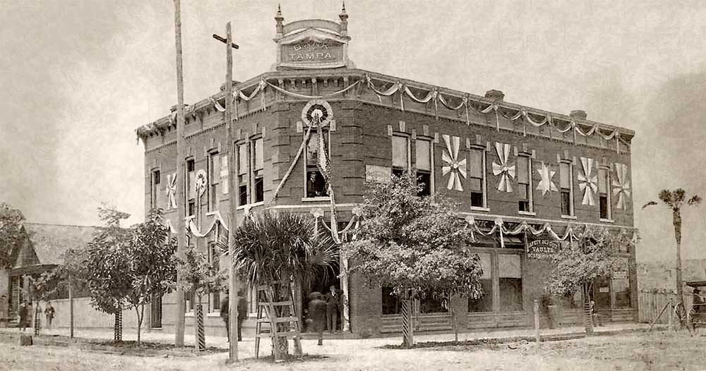 THE FIRST NATIONAL BANK OF TAMPA The First National Bank started life as "The Bank of Tampa" in the early 1880s in a small wood frame structure on Washington St. just west of Franklin St.