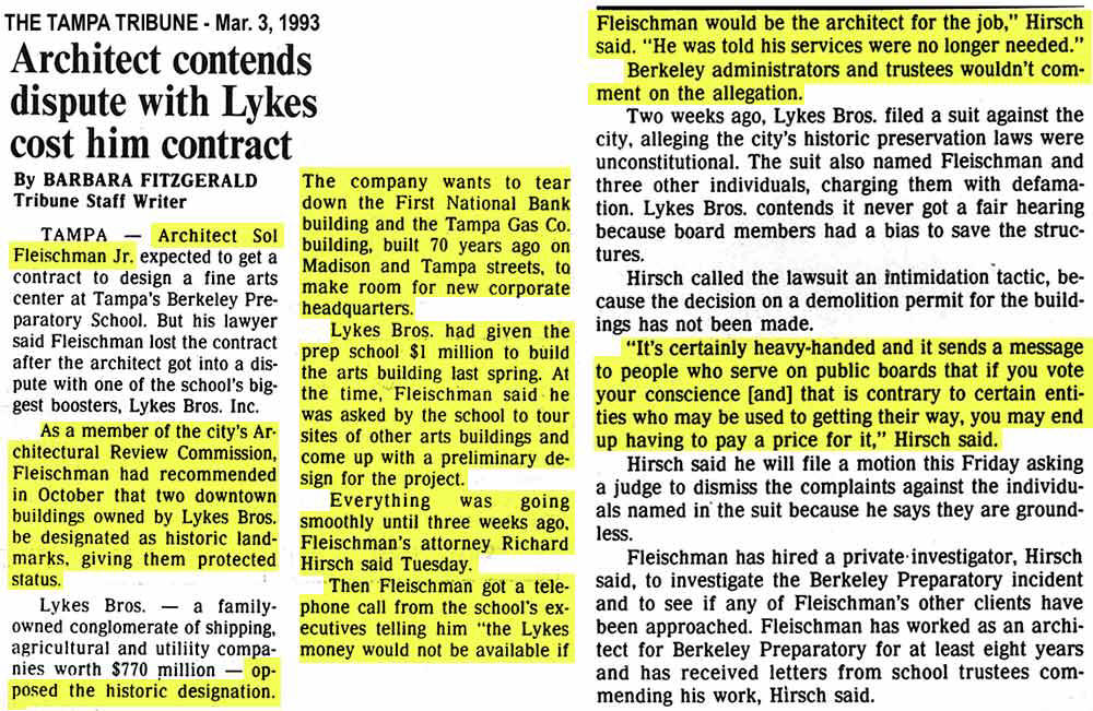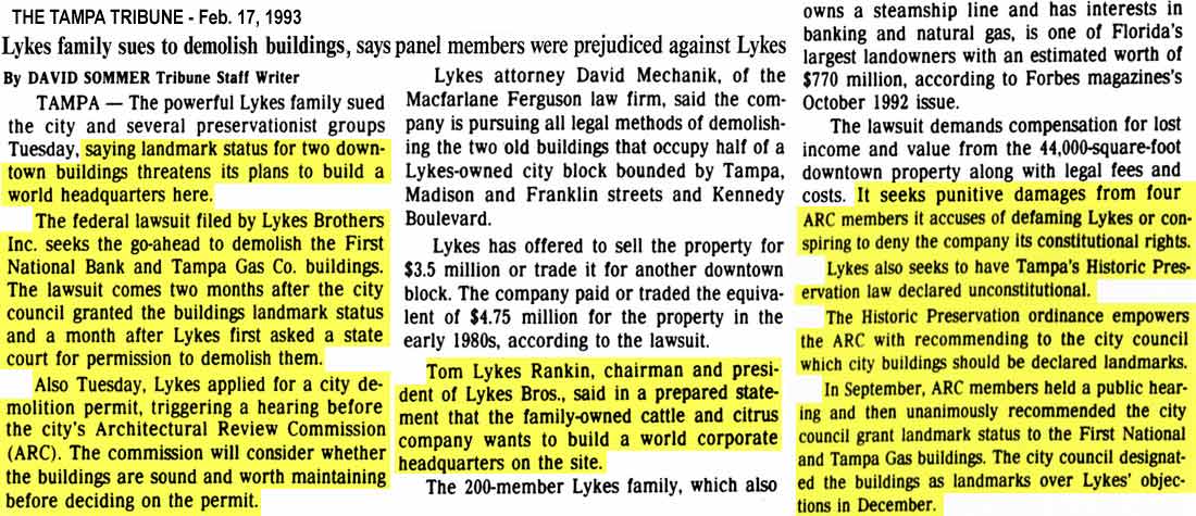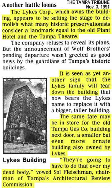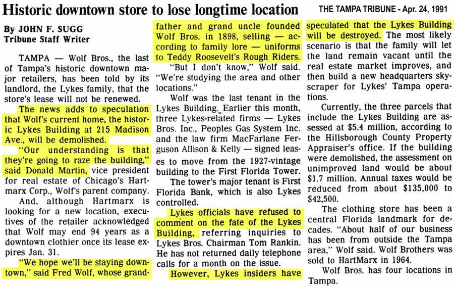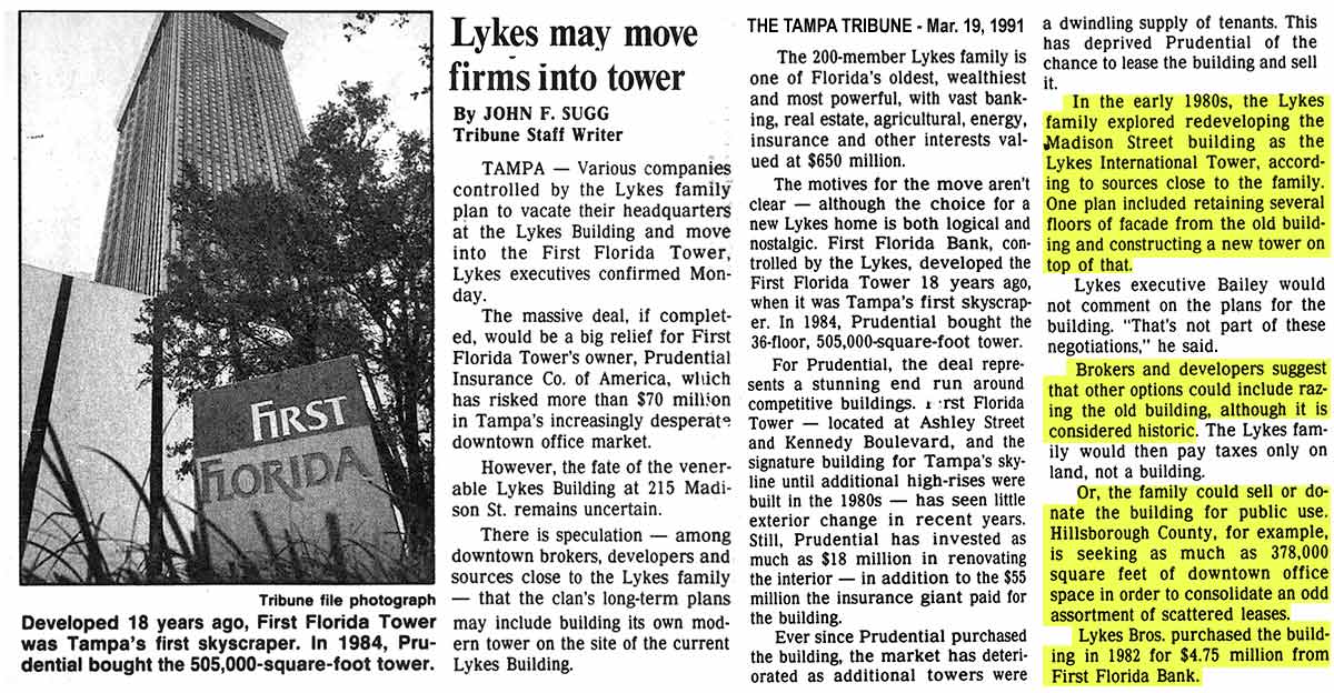 1991-03-19 TRIB Lykes may move from Lykes bldg to FF