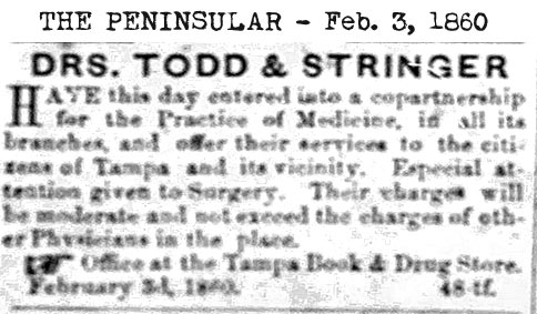 on November 13, 1834, Sheldon Stringer came to Tampa with his